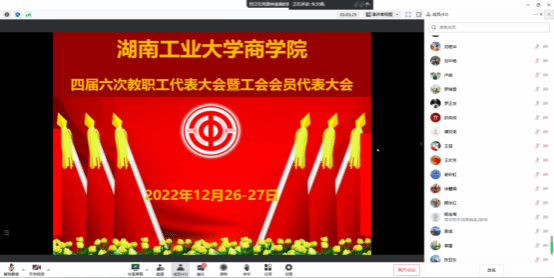 12月26-27日,商学院四届六次双代会通过腾讯会议以线上方式顺利举行,校纪委书记、湖南省监察委员会驻湖南工业大学监察专员张亚东教授出席正式会议,商学院领导班子成员及教职工代表共44人参加会议。