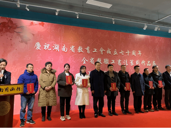 为深入学习宣传贯彻党的二十大精神,纪念湖南省教育工会成立七十周年,2月6日上午,在湖南省展览馆隆重举行全省教职工书法篆刻作品展开展并颁奖仪式,我校包装设计艺术学院教师蒋冰创作的行书作品《过洞庭》荣获优秀作品奖,图书馆邓珊妮创作的隶书作品《湖南赋》荣获入展作品奖。湖南省高校共有4幅作品荣获优秀作品奖。 (贺迅宇供稿)