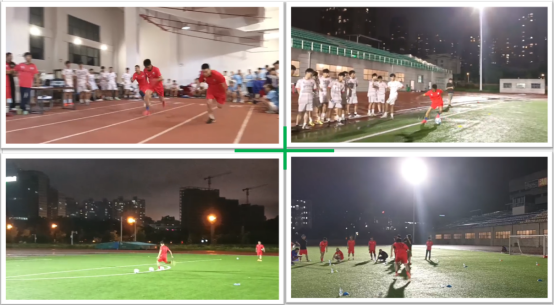 测试前的雷阵雨让草坪积水没过鞋跟,李光老师带着女足队员跪在泥地里布置嘉年华关卡。雨水顺着发梢滴在足球靶盘上,却浇不灭他们用“淋湿了的球鞋”画出的活动路线——那些在雨幕中若隐若现的标志碟、标志桶,后来成了队员们突破障碍的星光。在此,也特别感谢这一幕的记录者家驹老师,带着专业的摄影师为本次活动留下了美好瞬间。