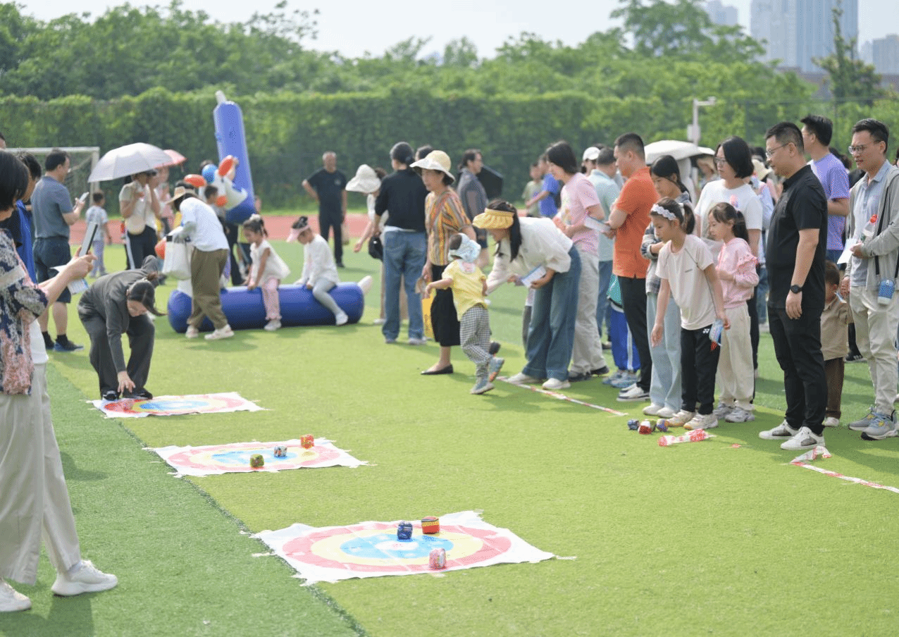 当天,400多个教职工家庭踊跃参与,活动现场热闹非凡。亲子们或并肩协作攻克难关,或相互鼓励加油打气,每当完成一项挑战,孩子们便欢呼着与家长击掌庆祝,家长们也纷纷用手机记录下这一幕幕温馨瞬间。加油声、欢笑声此起彼伏,浓浓的亲子温情在阳光下肆意流淌。